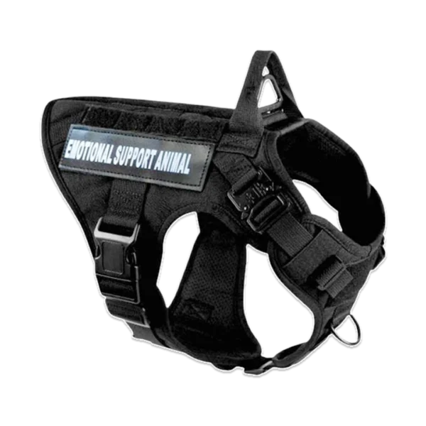 Arnés táctico ESA para perros fabricado para ofrecer durabilidad, control y comodidad. Diseñado para ayudar a los perros de trabajo en las tareas cotidianas y en entornos exigentes.