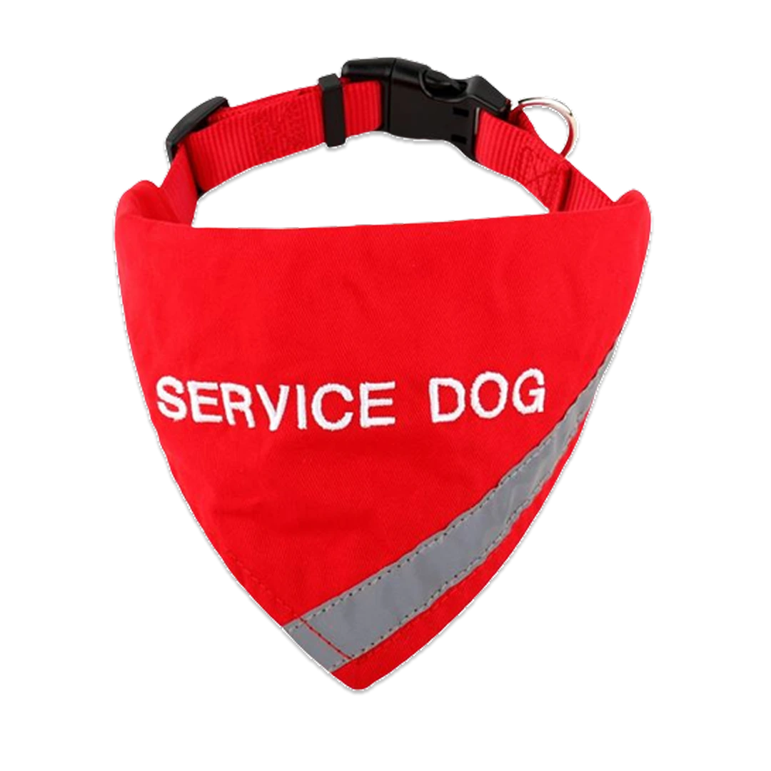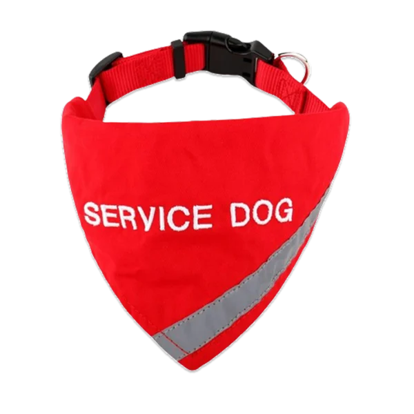 A service dog bandana with a built-in collar is a simple, visible accessory that helps identify a working dog in public. While not required by law, many handlers use bandanas to reduce questions and distractions.