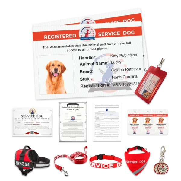 The Service Dog Full Kit Bundle is a comprehensive package that includes all necessary accessories and documentation for registering and identifying your working companion. This complete solution helps you avoid unnecessary confrontations and provides clear verification of your animal’s trained status.